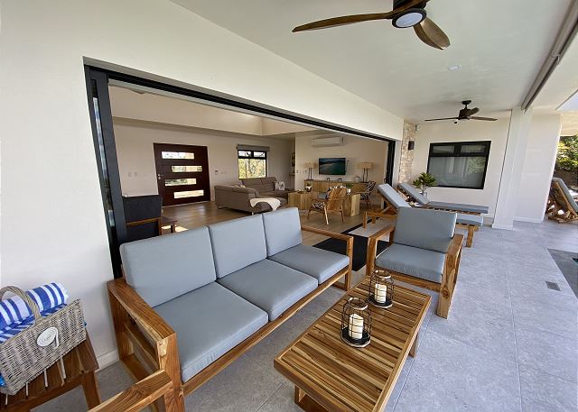 The property also has a divine outdoor living and dining area complete with an infinity pool. Imagine waking up in the morning and having coffee on the terrace looking at the ocean, enjoying a refreshing lunch after a morning on the beach, or an evening barbecue under the starry sky. There is an elevated bar area outside for you to relax, enjoy your wine and watch the sunset.