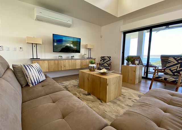 The main open-plan features high ceilings that let in plenty of natural light, while a double wall of glass allows you to delight yourself with jaw-dropping ocean views.